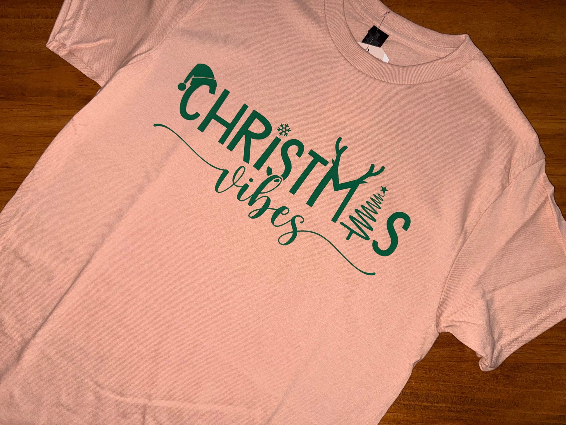 Step into the season with all the cozy, cheerful energy of Christmas wrapped into one adorable tee! Our Christmas Vibesshirt brings together playful holiday elements — from festive lettering to whimsical accents — creating the perfect look for all your December moments.